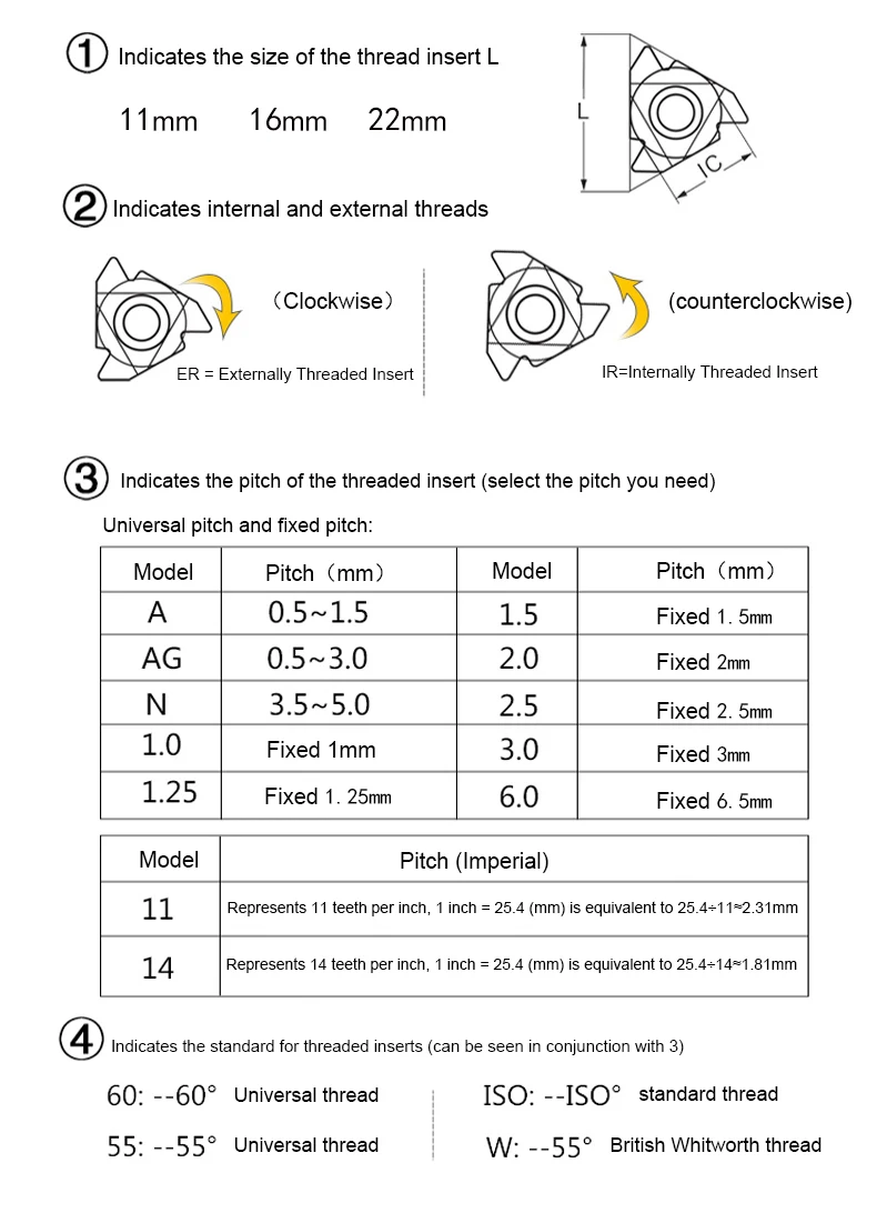 22ER/22IR 4.0-6.0ISO Gewinde CNC Werkzeuge Hartmetall Einsätze für N55/N60 Gewinde Drehen