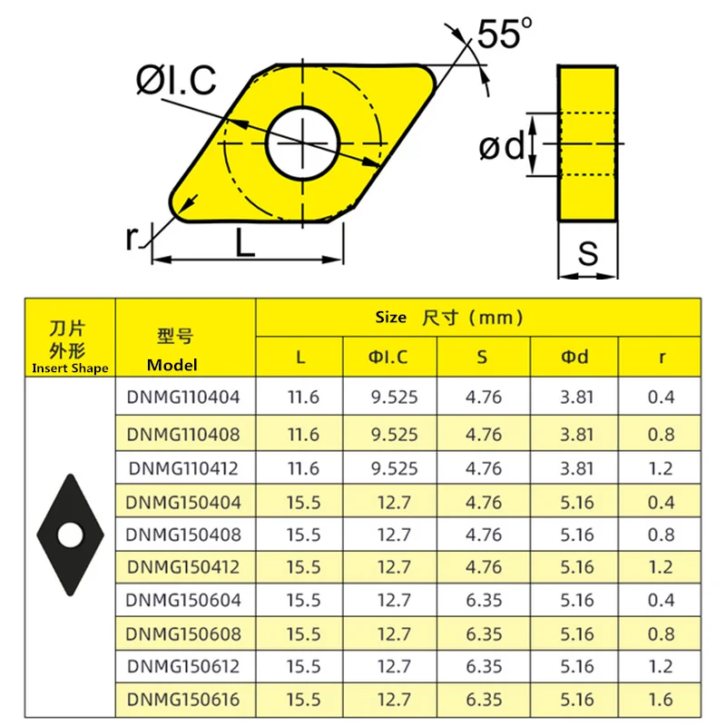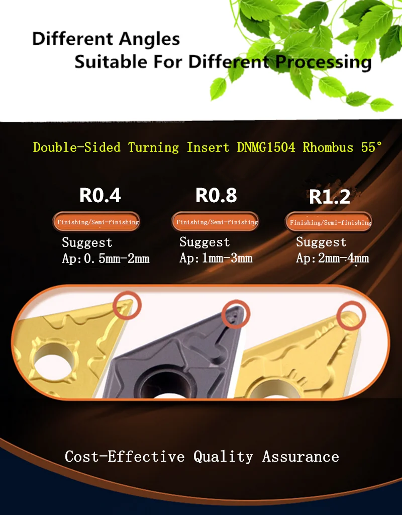 Genauigkeit: Das „M“ in DNMG steht für eine mittlere Toleranzklasse. Diese Genauigkeit gewährleistet gleichbleibende Leistung und zuverlässige Bearbeitungsergebnisse. Sie ermöglicht eine präzise Steuerung des Schneidprozesses, die für das Erreichen enger Toleranzen bei der Herstellung von Stahl- und Edelstahlteilen unerlässlich ist.